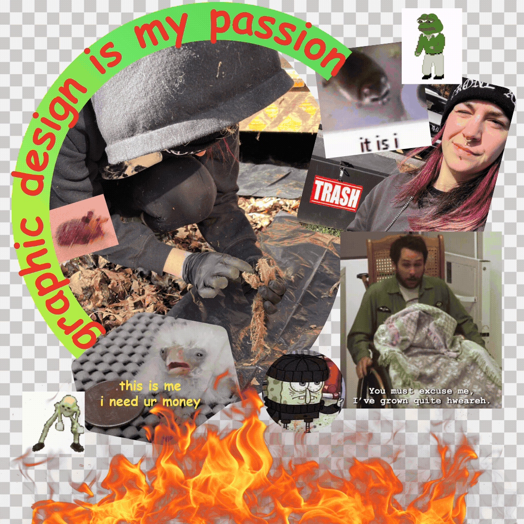 I'm odd, chaotic, nonsensical, and still can't believe anyone would hire me to do anything for them ever. My sense of humor is dark and absurd. I communicate best via memes I send from my lavishly decorated hermit cave. One of my favorite pastimes is something I call "goblin-ing" and mostly consists of foraging for cool plants and animal bones to collect or make art with.